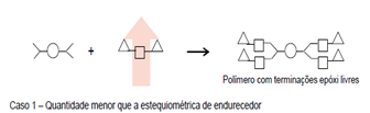 Quando a quantidade de endurecedor utilizada é proporcional ao necessário para a estequiometria correta da reação com a resina, ocorre a formação de um polímero termofixo, com todas as propriedades físicas em seu máximo valor.